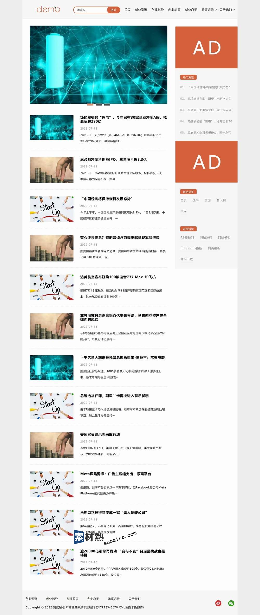 PHP开发的创业资讯网源码/创业故事文章资讯整站源码/新闻博客类网站带手机版