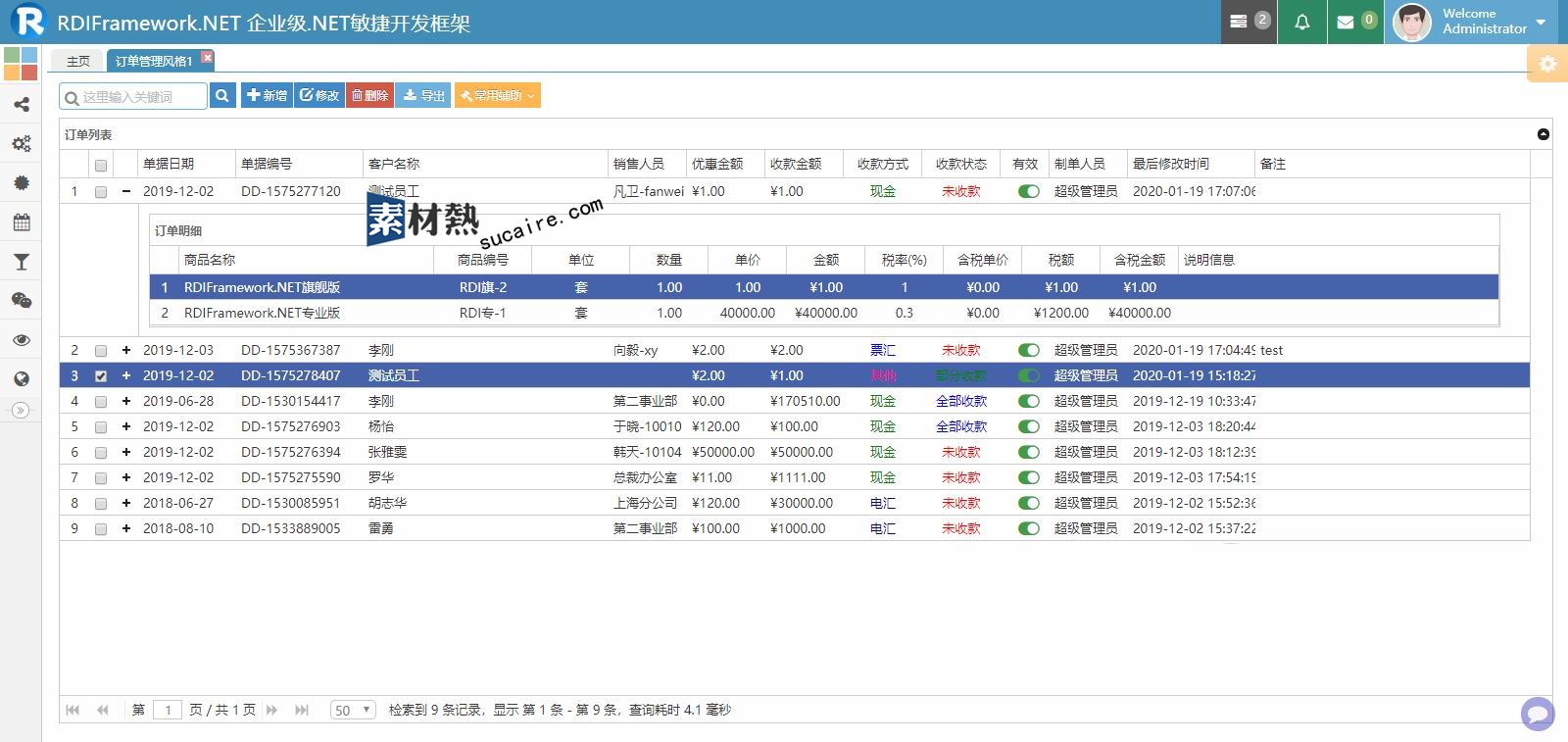 框架采用目前最主流的C#语言开发完成,支持多种数据库类型,支持BS、CS。使用RDIFramework.NET敏捷开发框架能提高管理类软件系统的整体质量、提高模块与模块之间的兼容性、提高代码的重复利用率,使软件系统架构更加合理、质量更加过硬,使得劳动成果最大程度上重复利用。框架基础模块包括:强大灵活的权限控制组件,模块分配与管理组件,灵活易用的工作流组件、数据字典管理组件,丰富的报表统计组件、即时通讯(IM)组件、邮件中心组件、微信开发相关组件、任务调度组件、自动升级组件,各种常用的商业控件,强大的基于本框架的代码生成器,开发实例、丰富的基础类库、开发辅助工具等各基础常用功能组件。框架提供的大量通用插件,完成功能的开发就像搭积木一样,只需要把各种组件进行组合拼装,拼装好了系统的开发也就完成了。应用系统建立在此框架之上,采用构件式、可复用开发,节省开发成本,加快开发速度,在软件开发上更好的做到多快省。适合低中高任意开发水平的开发者,可以开发OA、ERP、BPM、CRM、WMS、TMS、MIS、BI、电商平台后台、物流管理系统、医院管理系统、快递管理系统、教务管理系统等各类管理软件。由框架开发团队的原版人马直接提供技术支持,为您顺利完成开发工作保驾护航。不管您是零基础还是专业开发人员,都能轻松驾驭这套开发框架。
