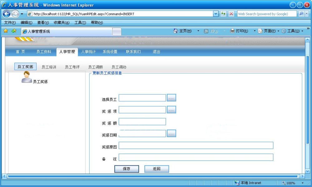 记录统计和员工奖惩(部门);系统设置模块划分为系统基本信息,部门、设置、奖惩、