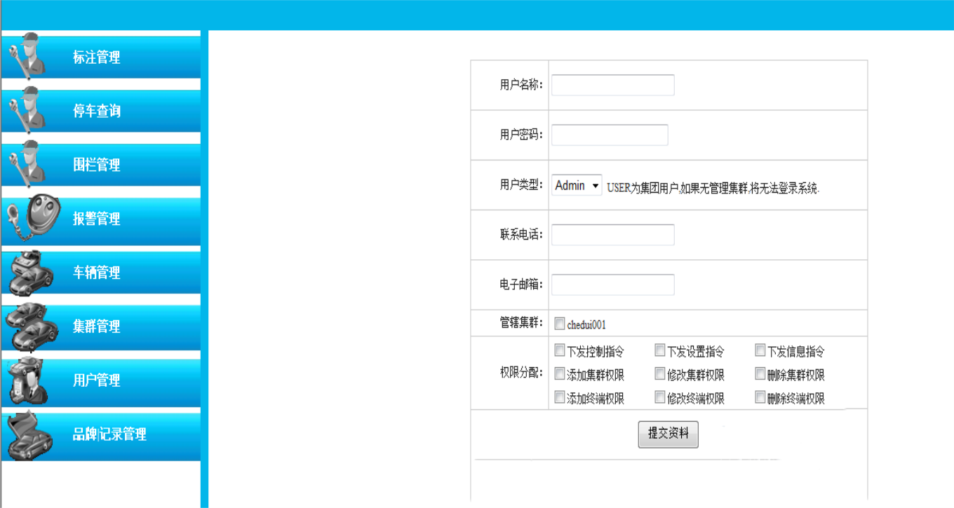 号、删除帐号、添加车队、修改车队、删除车队、添加车辆、修改车辆、删除车辆、设置相关、取得终