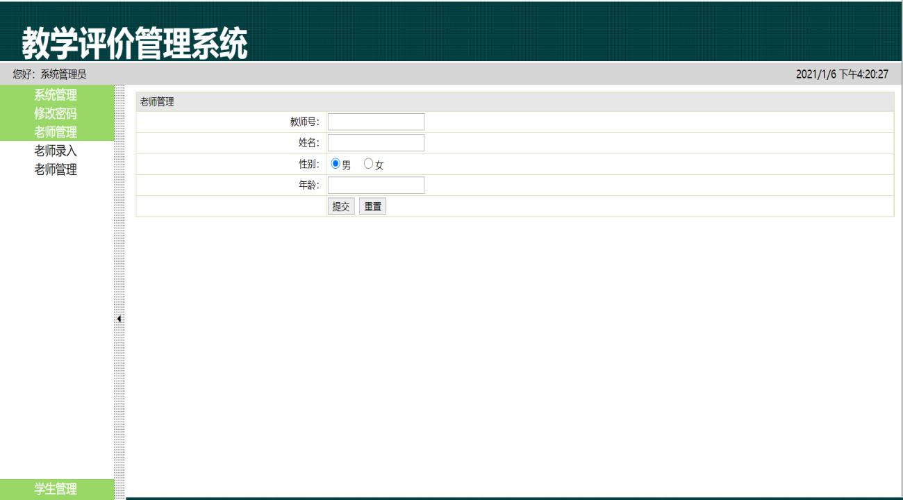 教师教学评价系统,角色为管理员、老师、学生,管理员可以新增评价指标、